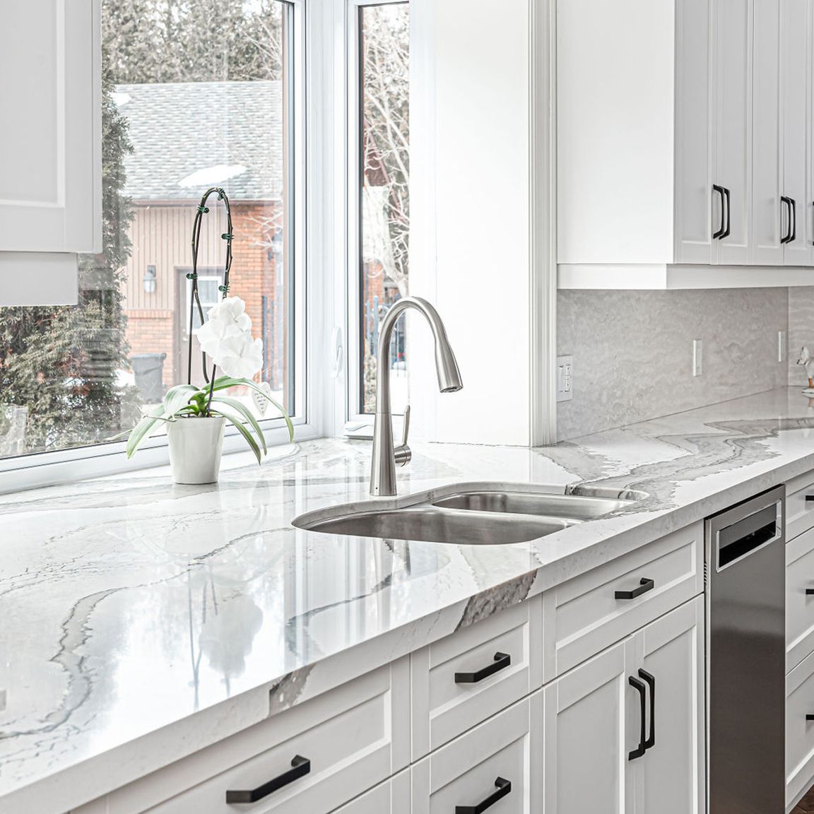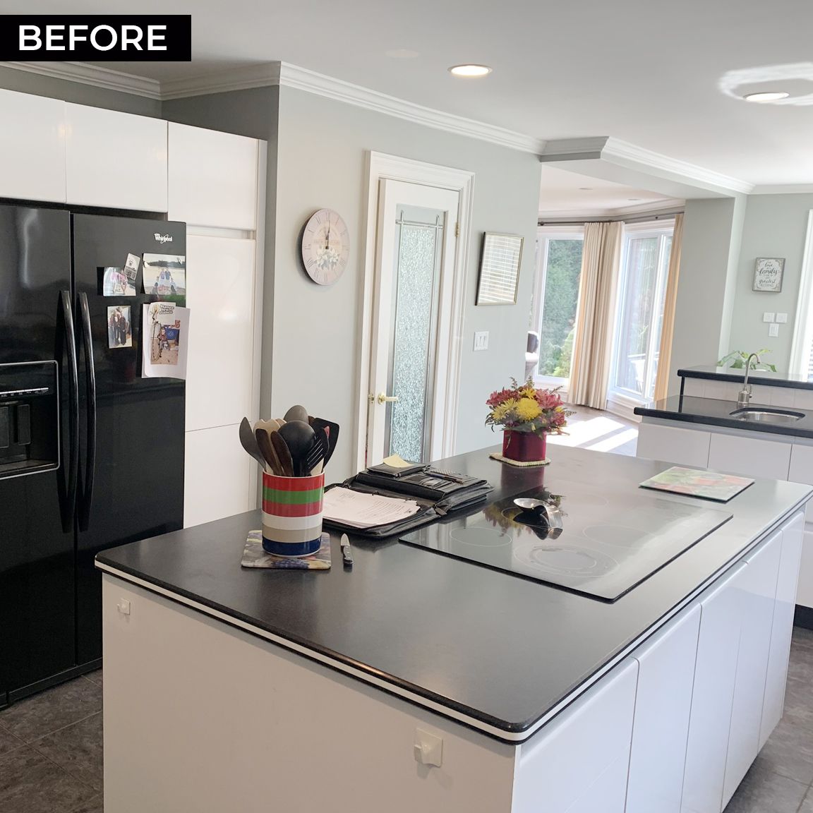 The Issue: The homeowners were looking to modernize their dated front entrance and main staircase. Also on the wishlist was a brighter kitchen, an improved traffic flow to fit their lifestyle, and a bit of “WOW” factor.